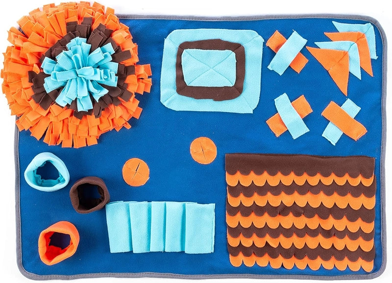Ésta alfombra es de gran ayuda para entrenar y entretener a los animales escondiendo premios y comida. Una original y colorida alfombra interactiva para mascotas contra la voracidad y el aburrimiento, ya que permite enseñar al animal a comer más pausadamente, sin ansiedad ni estrés, de una forma más saludable y divertida. También ayuda a desarrollar sus habilidades para conseguir el alimento, estimulando su inteligencia, olfato y curiosidad, y es una manera de mantener a nuestra mascota entretenida mientras estamos trabajando!