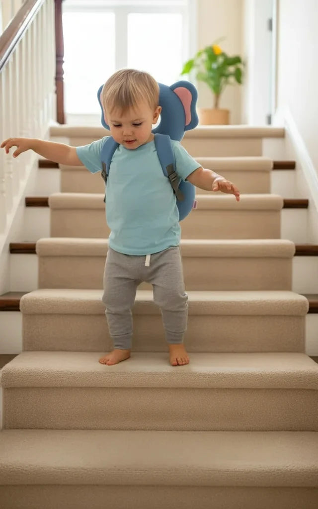 Olvídate de la ansiedad. Con la Almohada Elefante, puedes ver a tu pequeño explorar, gatear y dar sus primeros pasos sabiendo que está protegido.