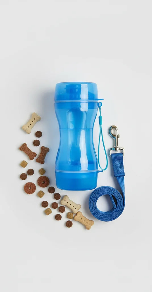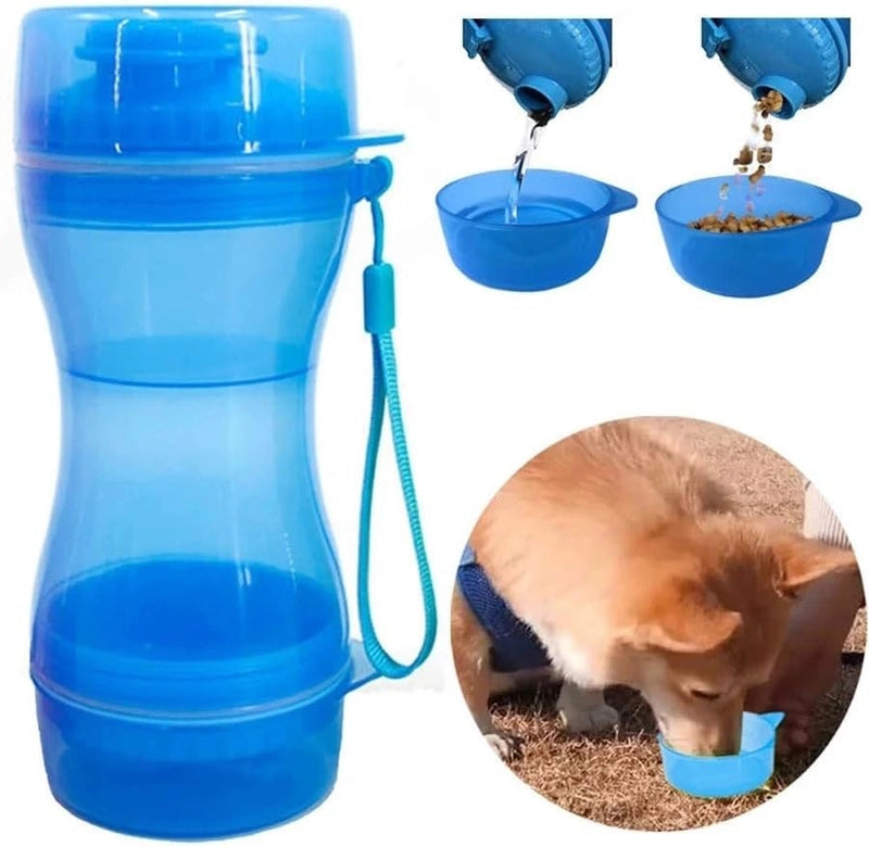 ¡Con esta botella 2 en 1, olvídate del estrés! Agua y comida en un solo lugar, ligero y fácil de usar. ¡Tu compañero estará siempre listo para la acción!