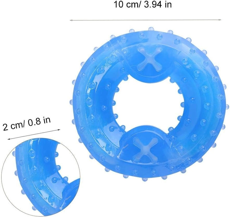 Refresca, calma encías y limpia sus dientes mientras juega. Dile adiós al aburrimiento y al mal aliento. Se enfría fácilmente en el congelador, permitiendo un enfriamiento duradero que proporciona una refrescante y agradable sensación de alivio durante los calurosos días de verano. También es un eficaz aro de dentición que ayuda al perro a masajear sus encías, a fortalecer su mandíbula y a mantener su dentadura limpia y sana, impidiendo la acumulación de placa y sarro. Este juguete mordedor para mascotas dispone de una ranura para introducir comida y premios que atraen el interés del animal y lo motivan para jugar y moverse, entrenando y potenciando una masticación más pausada y saludable para disfrutar de su recompensa. Además, reduce su ansiedad y favorece su diversión, manteniendo a la mascota activa y evitando que pueda morder y dañar otros artículos del hogar.