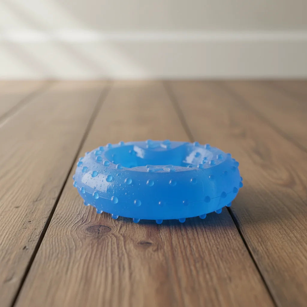 Perfecto para cachorros, alivia el dolor de la dentición. Su forma de dona y textura estimulan el juego, evitando el aburrimiento y la ansiedad.