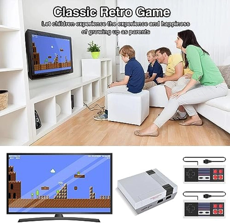 ¿Listo para desconectar y volver a conectar? Nuestra consola retro es tu pasaporte a la era dorada de los videojuegos. Revive tus aventuras pixel-perfectas favoritas y crea nuevas risas en familia. ¡Pura alegría y nostalgia al instante!
