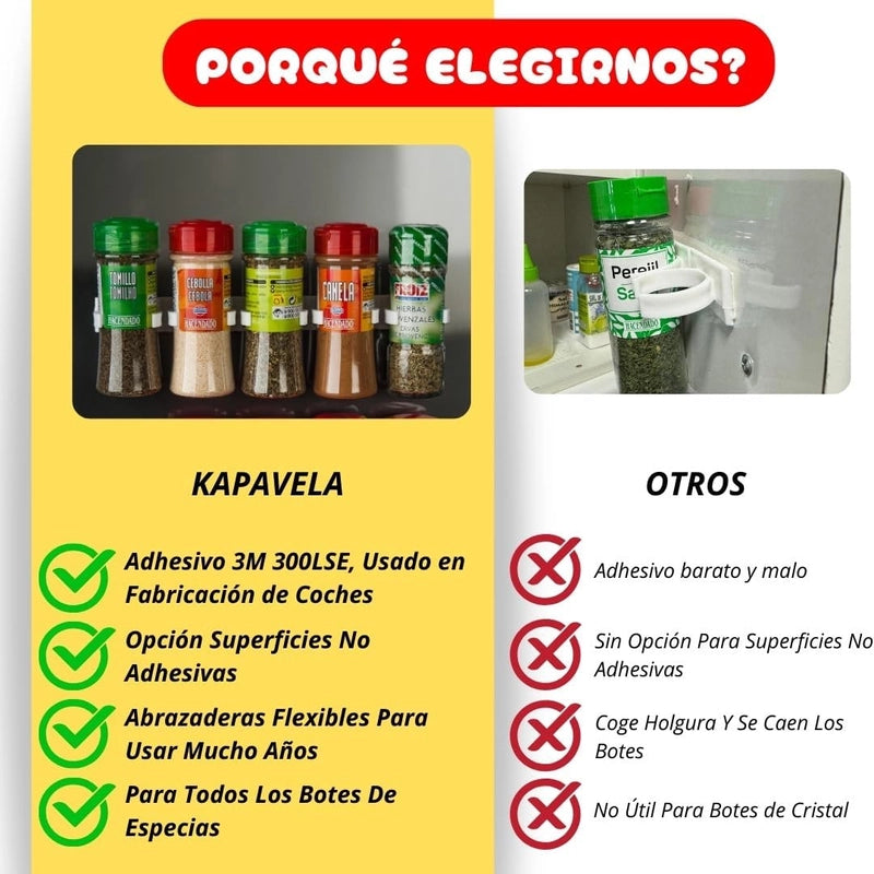 Organizador de Especias Adhesivo y Divisible Jarlock x20. Tus especias siempre a la vista, sin taladros ni desorden